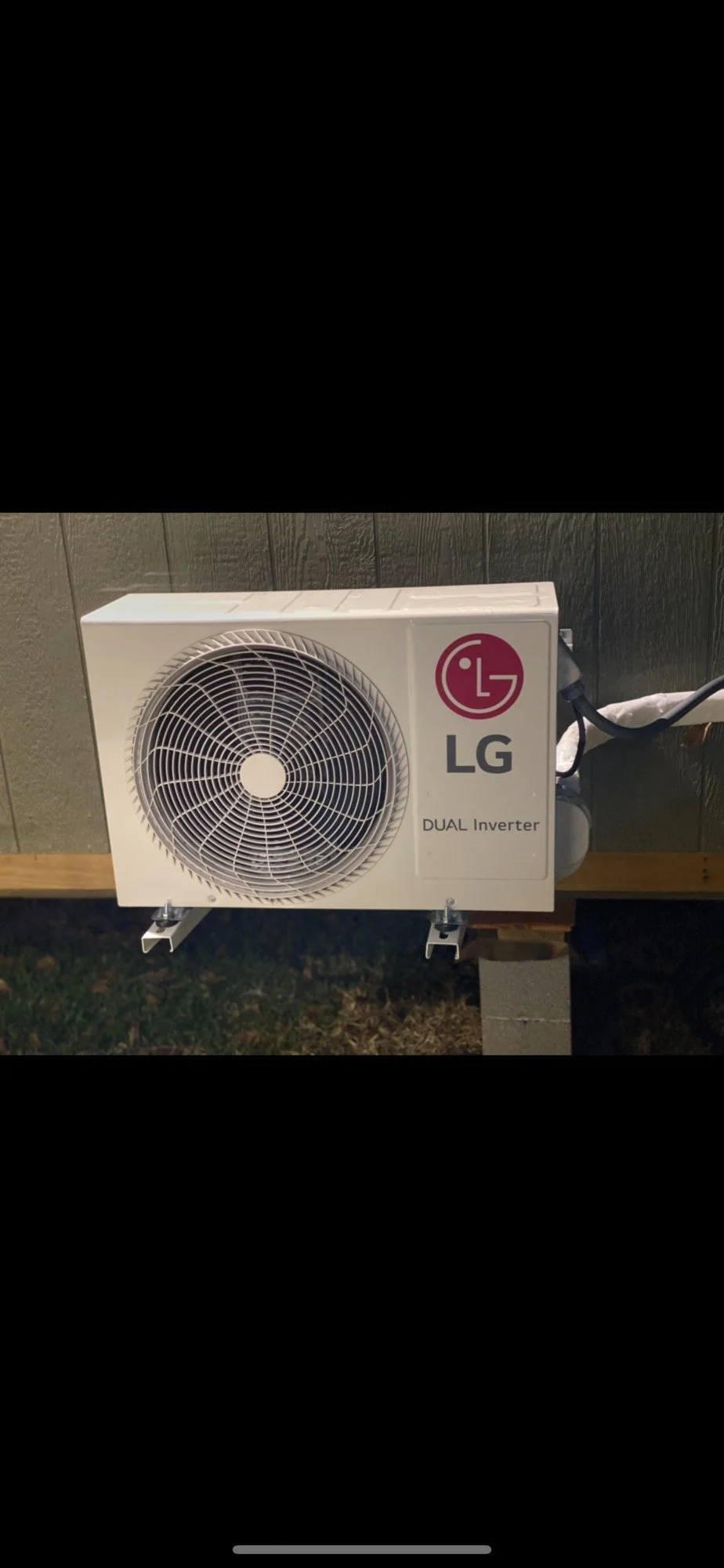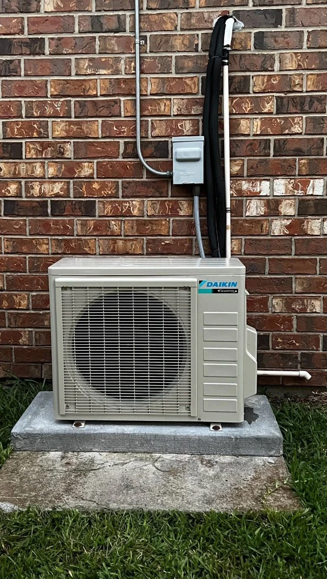 A ductless mini split system includes one outdoor unit and one indoor unit.